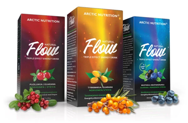 Edustamme ja myymme myös huippulaatuisia lisäravinteita, jotka valmistetaan suomalaisista arktisista marjoista. Suosituimpia ovat FLOW-energiajuomat.